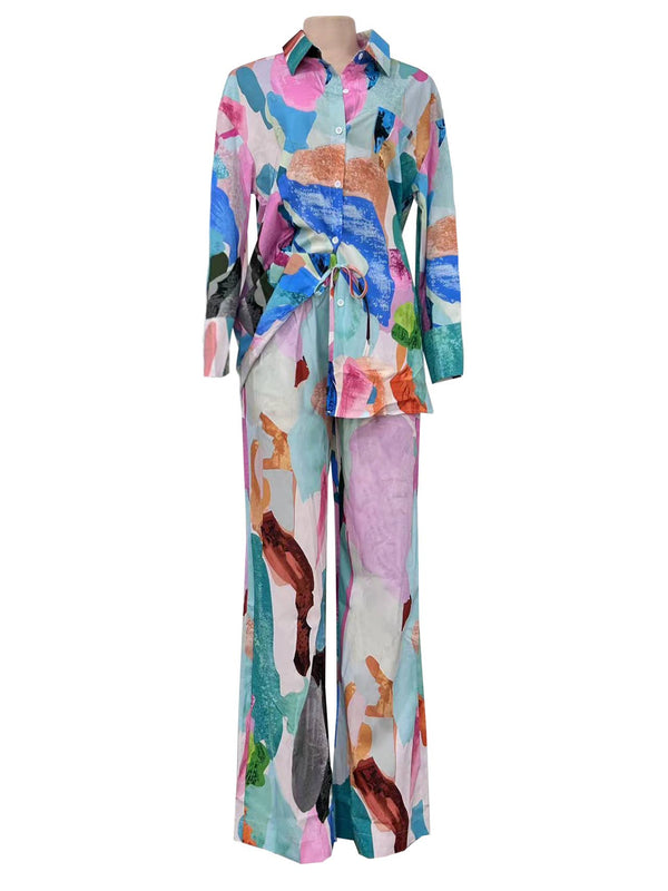 Spring Casual Chic Printed Shirt Two-Piece Set: Decor