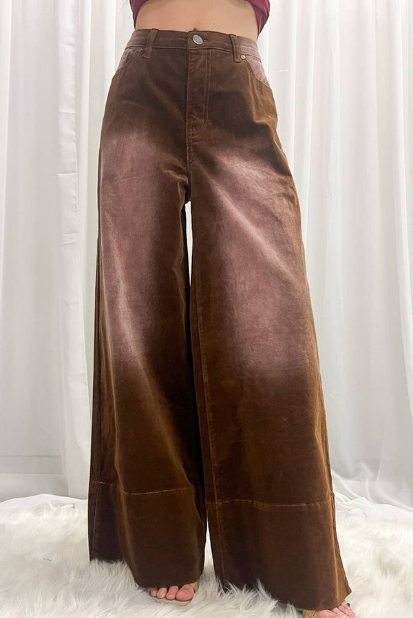 Stone Washed Cotton Corduroy Cropped Pants VP83140: Brown / S