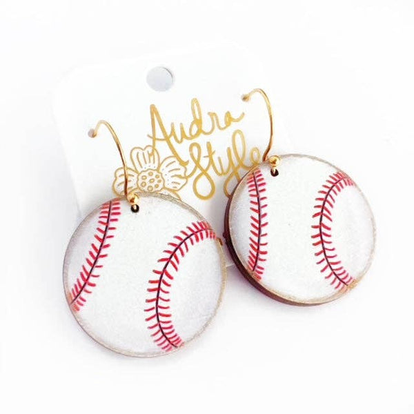 Baseball Pearl Cluster Enamel Drop Earrings in White & Red