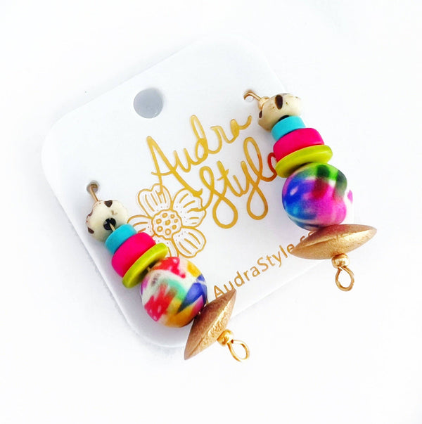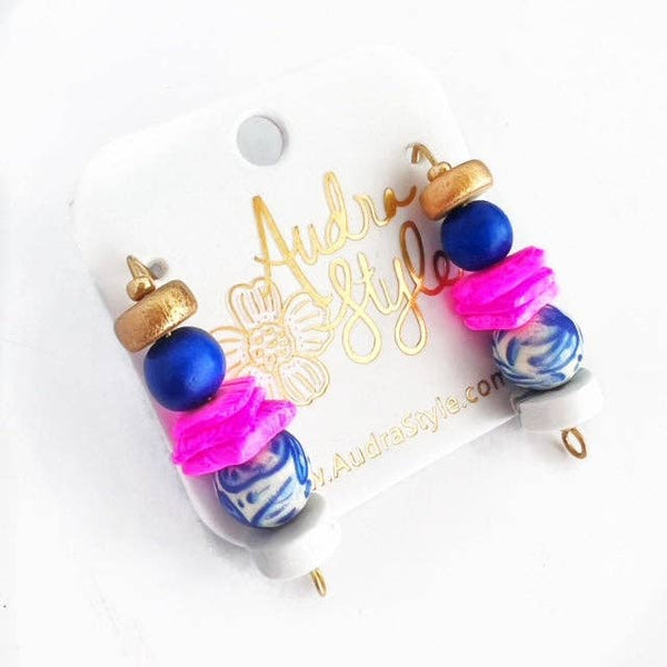 Carson - Beaded Drop Statement Earrings - Blue White Hot Pink