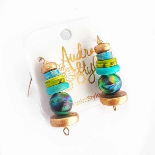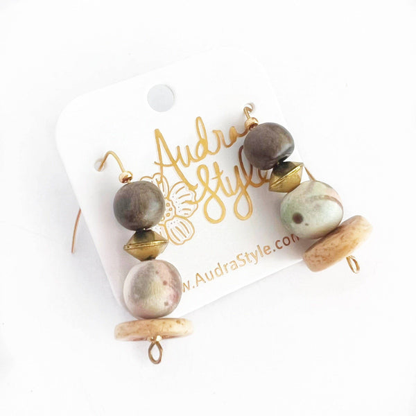 Carson - Beaded Drop Statement Earrings- Cream Abstract