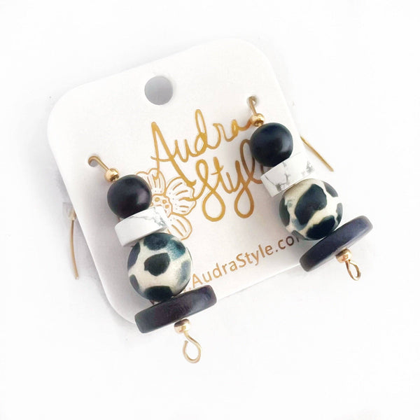 Carson - Beaded Drop Statement Earrings - Black Dot