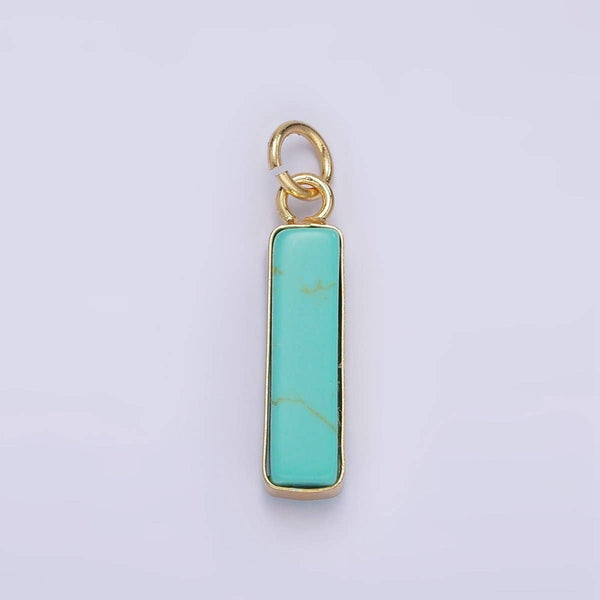 14K Gold Filled Rose Quartz, Turquoise, Shell Pearl Rectangular Tube Bezel Charm | D564: Turquoise