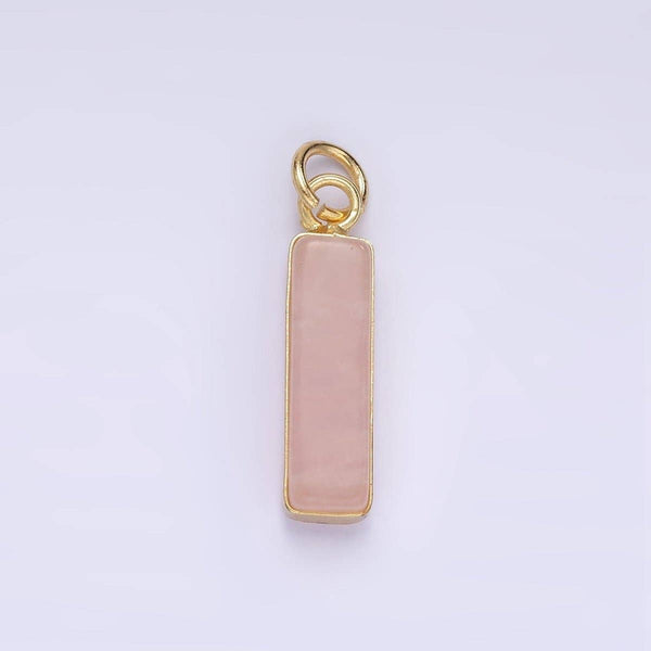 14K Gold Filled Rose Quartz, Turquoise, Shell Pearl Rectangular Tube Bezel Charm | D564: Rose Quartz