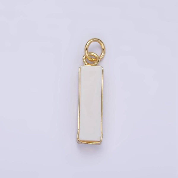 14K Gold Filled Rose Quartz, Turquoise, Shell Pearl Rectangular Tube Bezel Charm | D564: Shell Pearl