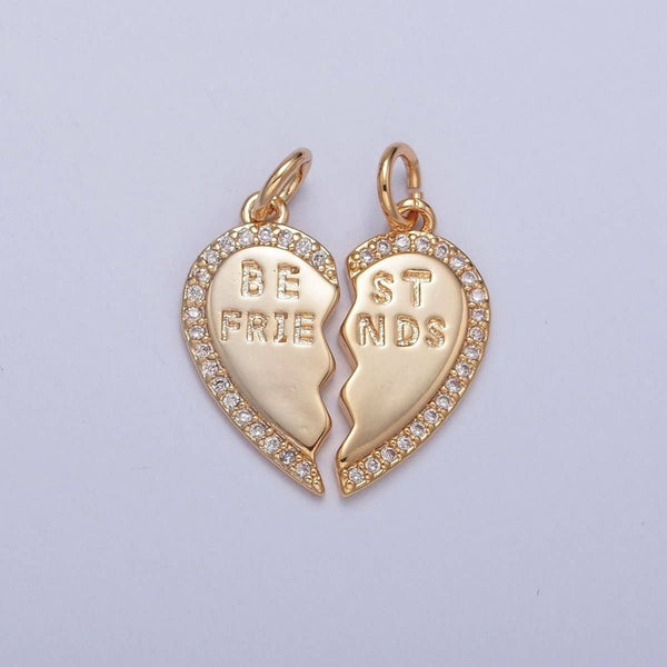 16K Gold Filled Best Friends Micro Paved Cubic Zirconia Breakable Heart Charm Set For Jewelry Making | X-228