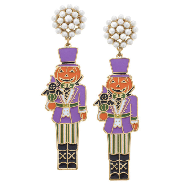 Halloween Enamel Jack O'Lantern Nutcracker Earrings in Purpl