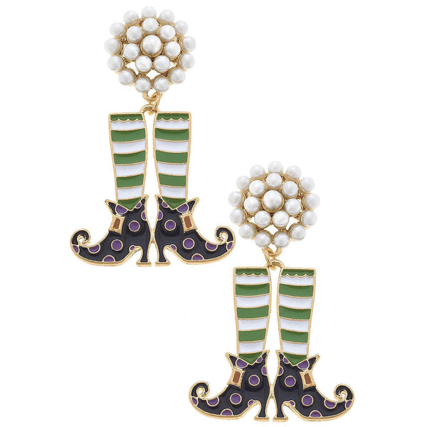 Halloween Enamel Witch Stockings & Shoes Earrings in Green/B