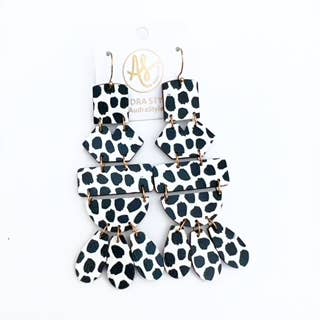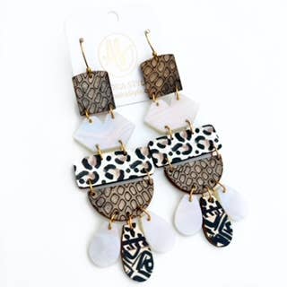 Large Geometric Fringe Statement Earring Taupe Leopard Black
