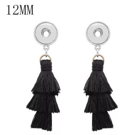 Mini-Snap - 12mm - Dangle Earrings w/Black Fringe