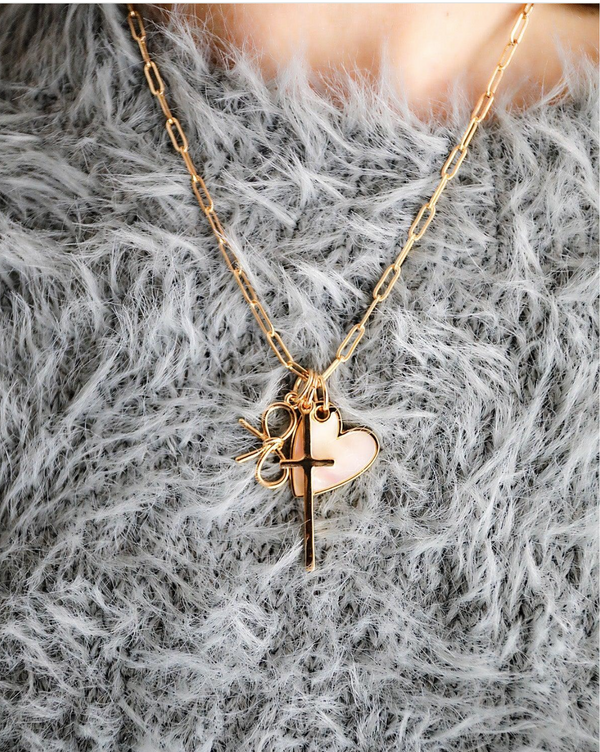 CANVAS STYLE CHARM BAR-Beaded Cross Bag Charm in Shiny Gold