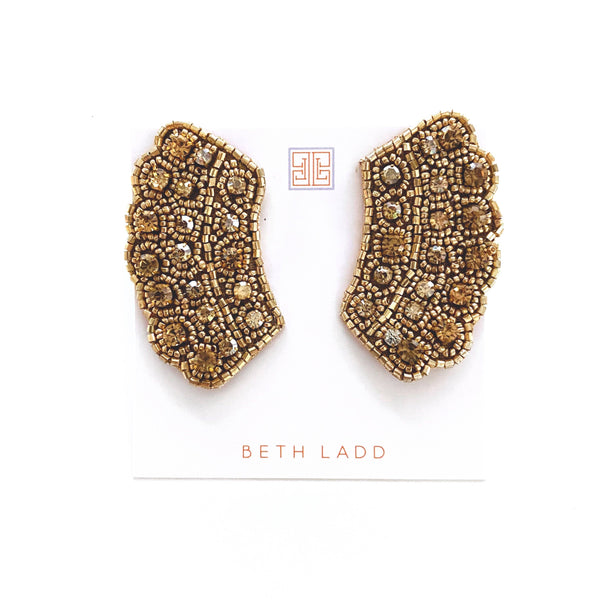 Bijou Sunburst Rosette & Pearl Stud Earrings in Worn Gold