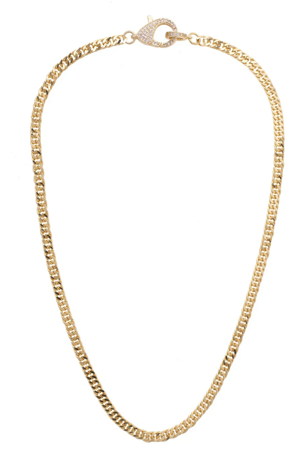 Maggie Pave Carabiner Charm Necklace Base in Shiny Gold