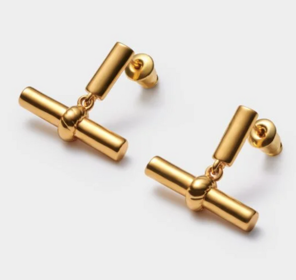 Themis Waterproof Gold T-Bar Earrings