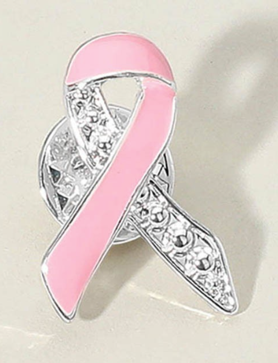 Breast Cancer Awareness Pink Ribbon Silver Faith Brooch